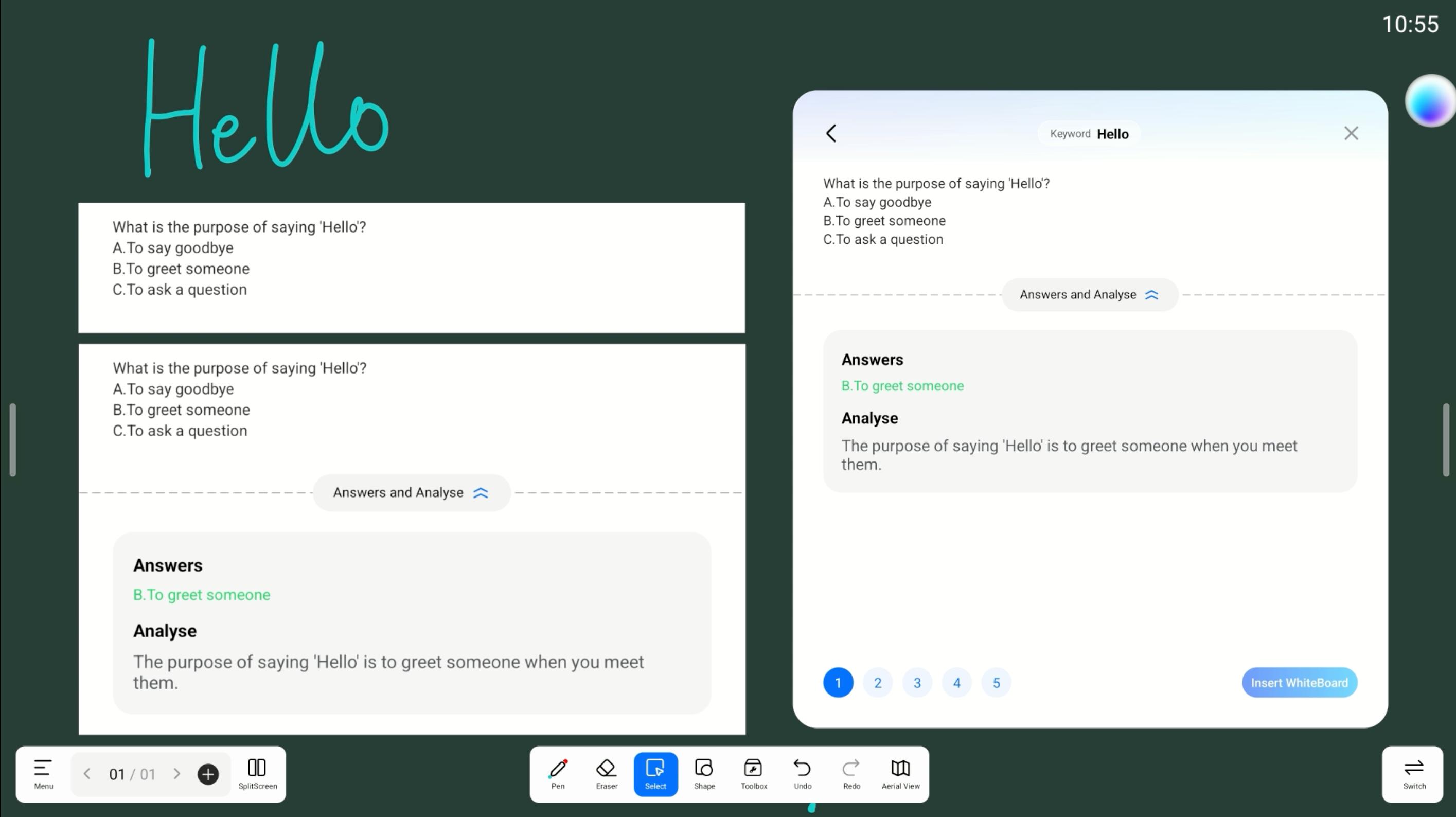 學生上堂提問,往往係即時、臨場、唔預先準備。Contex電子白板內建嘅AI Q&A,並唔係用嚟「交個答案俾學生」,而係協助老師: