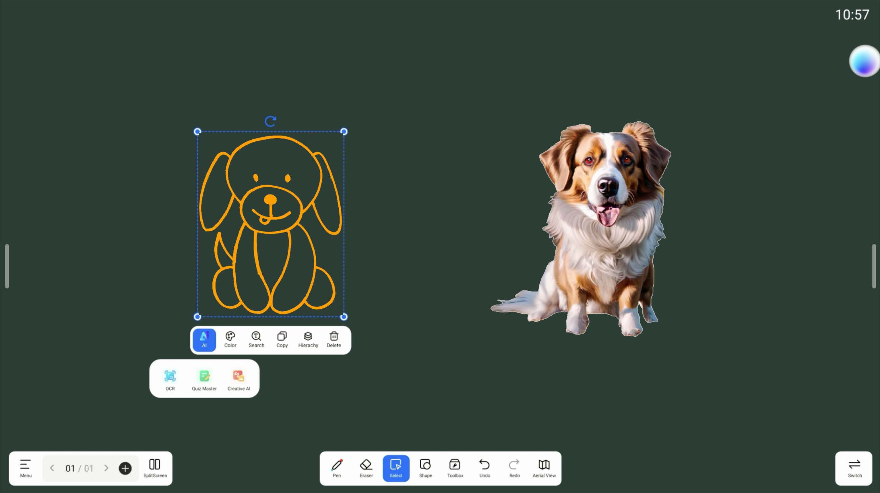 透過 Creative AI,老師只需選擇學生嘅草圖,系統就可以即時將佢轉化成畫面式創作,幫助: